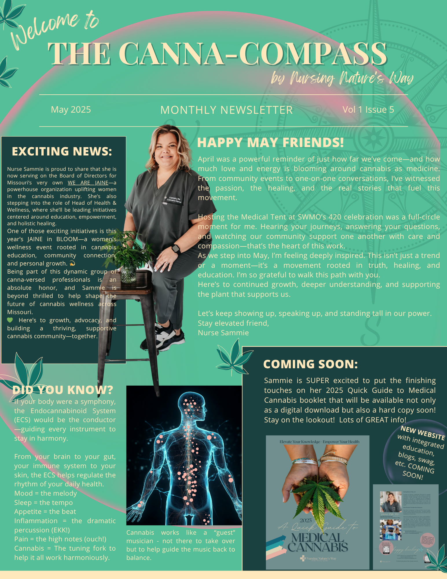 May: The Canna-Compass Newsletter brings you the latest updates from Nursing Nature’s Way, including new programs, events, and insights on cannabis education and wellness.